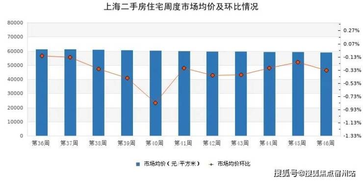 价格层面,市场仍处于下行通道。据诸葛找房数据研究中心监测,上周上海二手住宅市场均价为58,932元/㎡,环比下降0.33%,已连续多周保持缓步回落趋势。