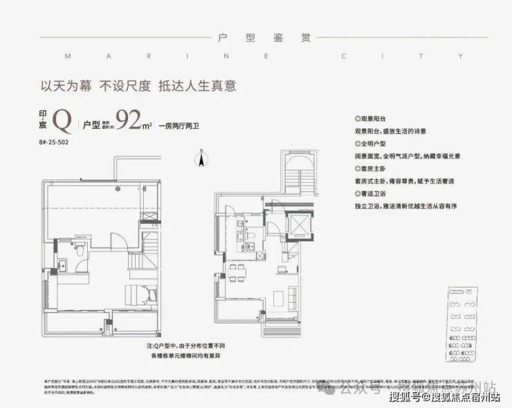除了高层户型, 项目还有建面约90-136㎡叠墅户型。叠加的优点非常多,相较于大平层,叠加区域分割清晰,会客区、休息区等可以明显区分开,互不干扰。同时,居住的私密性强,给到墅居的空间感, 得房率相较于高层产品也更高。作为居住业态的高阶形态,舒适度和仪式感也更胜一筹!