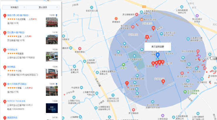 其它及饮食:豪大大鸡排(266米) 、赵鱼头(507米) 、赵鱼头成通酒家(553米) 、成通大酒店(555米) 、森绿人家常菜馆(674米) 、都是客酒店(罗泾店)(683米) 、水上饭店(陈镇路)(695米)、宝祥桥(51米) 、小朱桥(114米) 、宝一房产(120米) 、村夫烤鱼(690米) 、徐介路(333米)