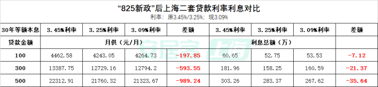这也意味着,对于上海二套房业主来说,如果申请房贷,最低利率有望达到3.09%,与首套房贷利率基本一致, 100万贷款月供差22元左右
