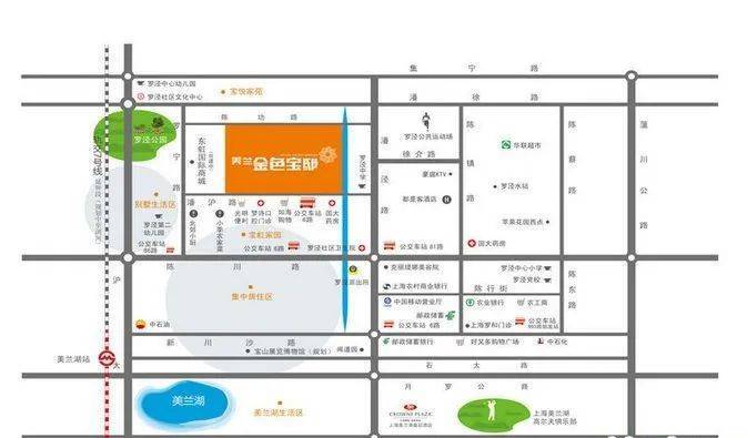 公共交通:潘沪路罗宁路 (281米) 、潘泾路潘沪路 (330米) 、罗宁路潘沪路 (400米) 、宝虹家园 (464米) 、潘泾路陈川路 (507米) 、罗宁路陈川路 (589米)