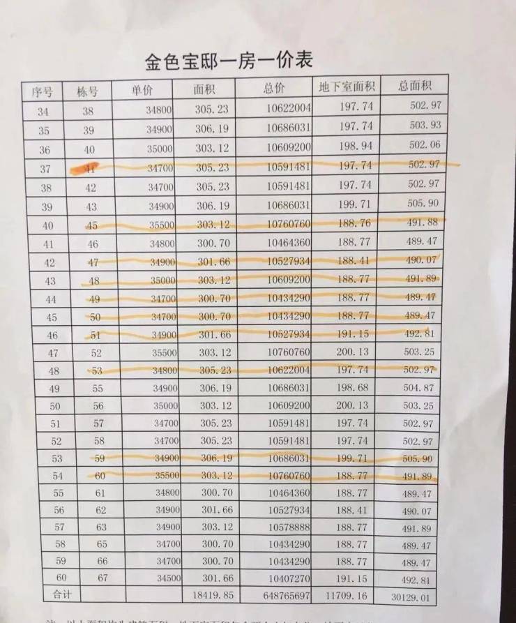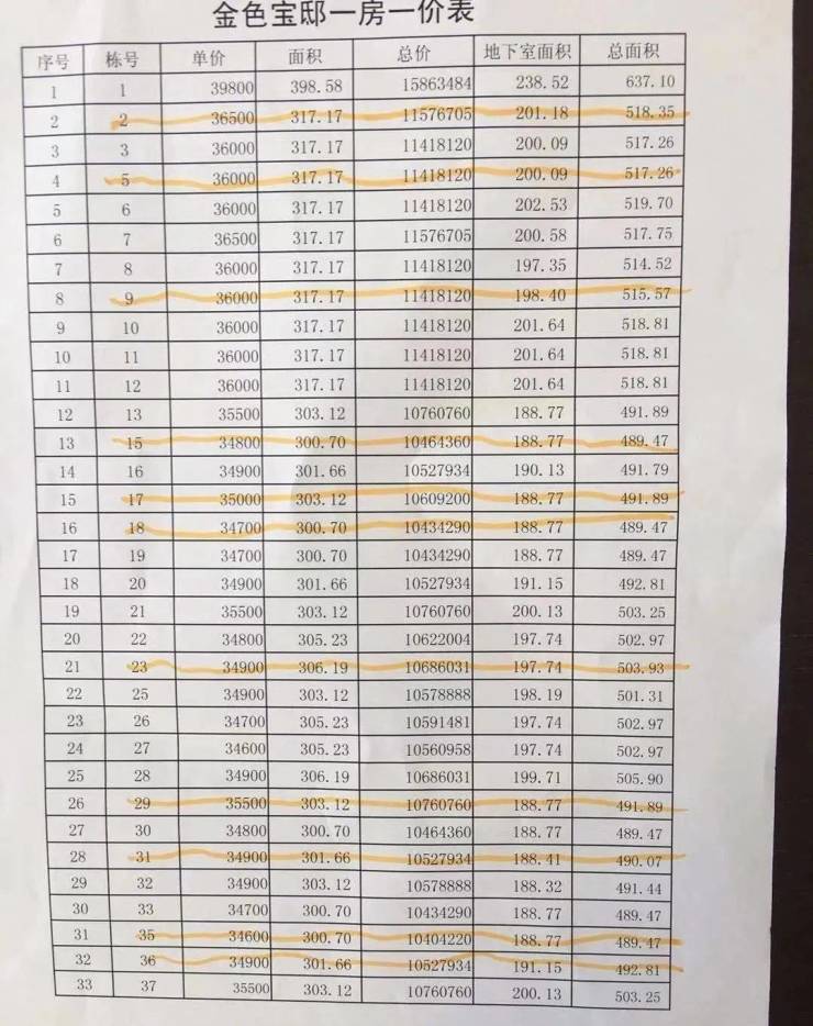 附一房一价表: