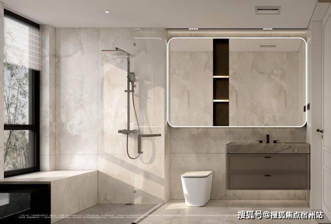 配备美妆龙头,大容量镜柜可收纳洗漱用品,✅✅保利西郊和煦售楼处电话:400 - 8824 - 258✅✅利用墙面空间设置壁龛,便于存放毛巾、衣物便于取用。