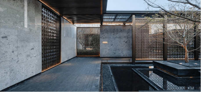 “一进”门堂,松石守望,以古代高门的仕官车马行院规制,礼迎当代雅仕;