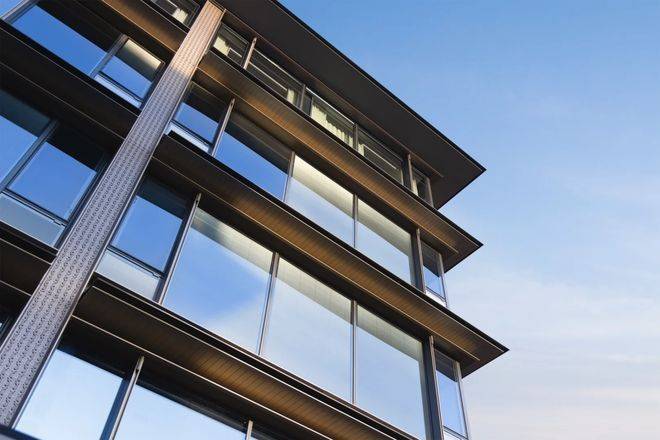 高层立面是非常干净的大玻璃面设计。
