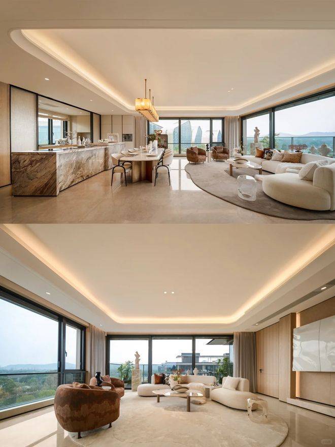 瀑布般的水幕如丝般细腻,将下沉庭院与上层空间巧妙地交织相连,水珠轻舞,幻化成朦胧之洲,营造出一种若有似无的默契。借助顶部镜面材质与四周的全景落地窗,这片角落的空间得以从多个角度融入同一幅画面,打造出既充满趣味又饱含意境的视觉盛宴。☑️☑️杭州「咏湖云庐」售楼处电话:400-833-6309【官网】☑️☑️