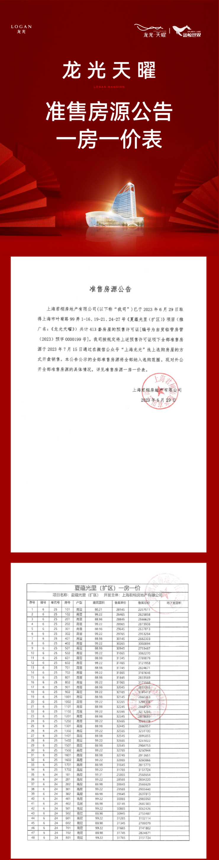 项目一房一价表