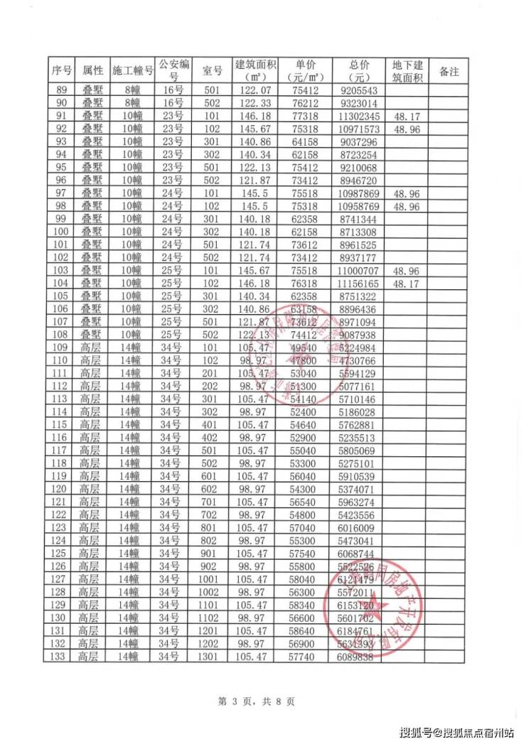 虹桥嘉悦府项目一房一价表: