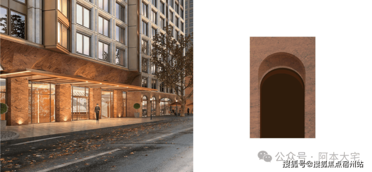 项目的风貌高层保留了古典建筑的 三段式立面 ,基座的连续拱券以及头部的柱头,无疑是历史留下的印迹。而当代材料工艺的引进,则让建筑的美有了更丰富的层次。