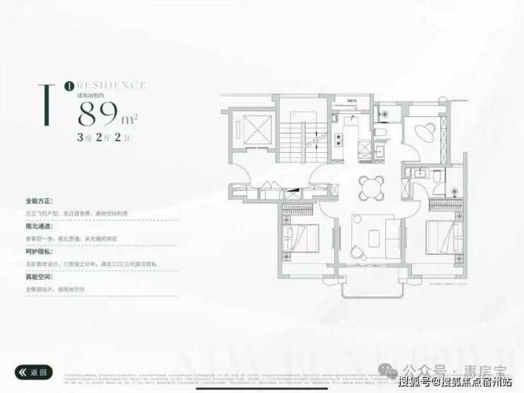 建面约89mi3房2厅2卫: