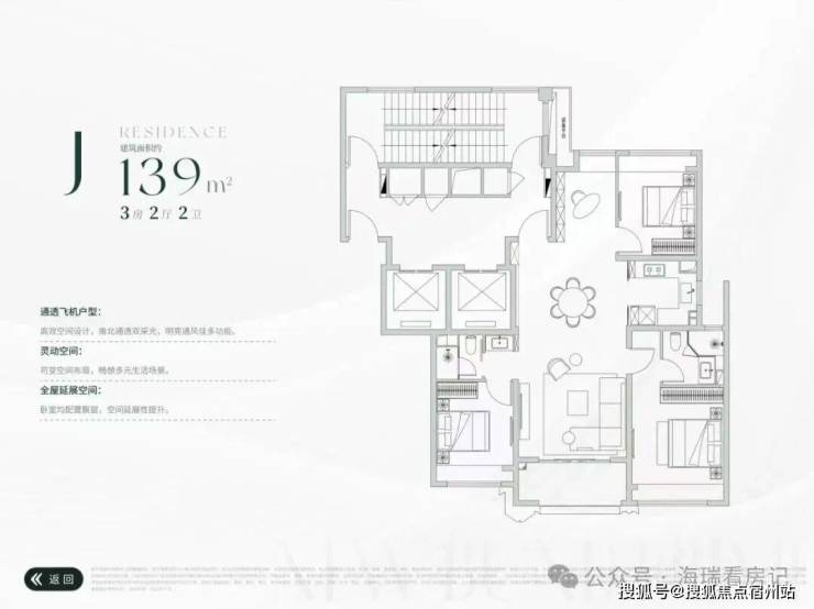 建面约139㎡3房:滨江百变户型