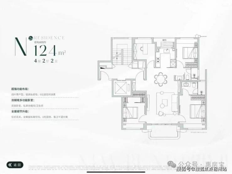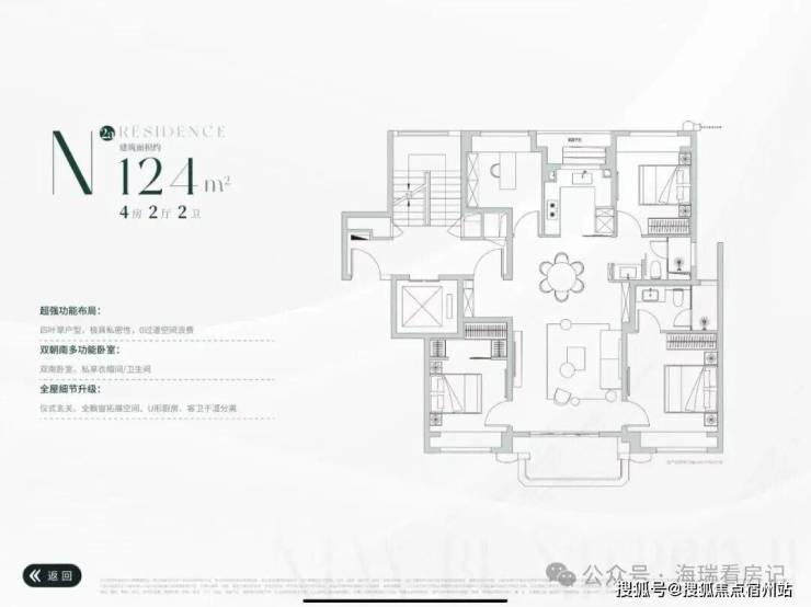 推出建面约124㎡四叶草4房神户型