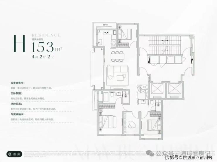 约153㎡户型设计:极致观景,西瞰江景,东瞰园景!4房功能齐备!