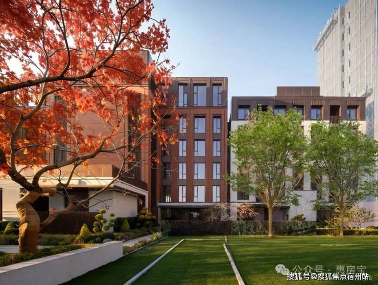 原林草坪剧场: 将是未来业主互动核心区,两侧榉树暗合“举业高升”寓意,中心移植红梅,实现冬有常青、寒有梅开的冬日别致景观。
