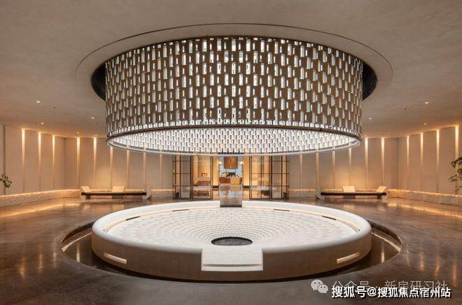浮光池院水院会客厅,现已实景呈现,水景中央的艺术小品,如一滴水在湖面晕开,泛起阵阵涟漪。