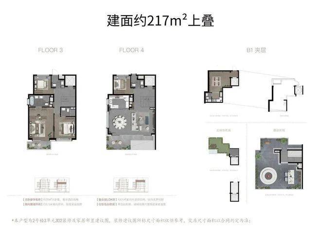 比如(以建面约200㎡下叠为例):