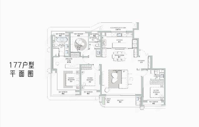 177m2艺术贵雅奢邸是海上·清和玺压轴力作,延续玺系经典的设计理念和思路,阔朗的四面大开间设计,客厅做到了大横厅设计,延续了曲面流体的阳台,并赠送了独具特色的阳台迷你花园。