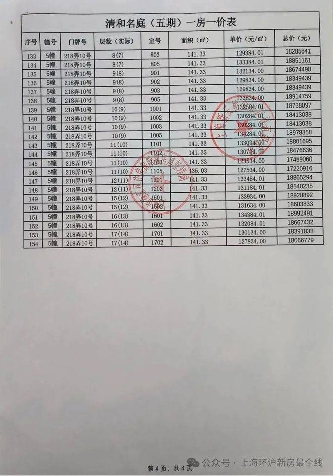 最新一房一价表公示 :