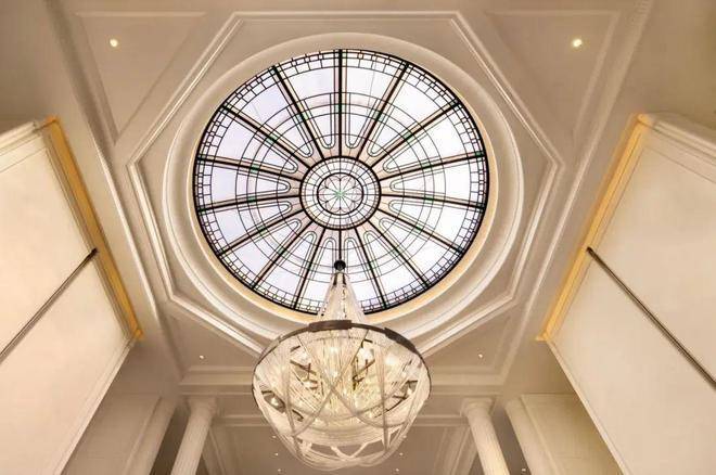 甚至壁面装饰的水晶灯,都选用高规格的E9级进口水晶制作。
