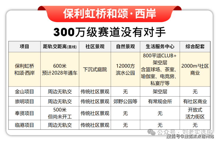 2站外的前湾已700万级,徐泾650万级,与项目同距离的赵巷也已550万级, 那保利虹桥和颂凭借300万级,叠加示范区线(在建)势能,无疑将成为大虹桥乃至全上海更为期待的价格洼地。