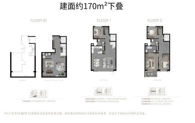 比如(以建面约200㎡下叠为例):