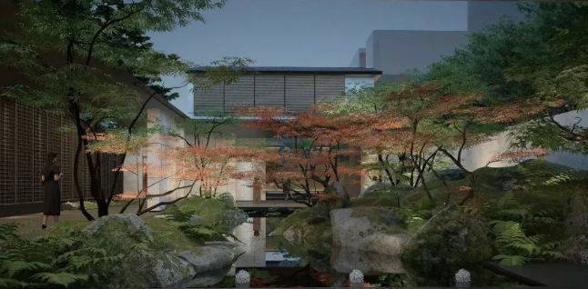 五进院:密植小乔合围的私密通道,配合定制石材院门,完成从公共到私域的过渡!