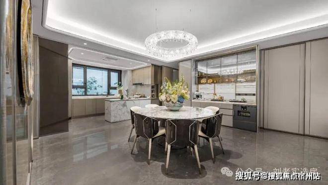 玄关、客餐联厅、厨房与阳台一体贯通,✅✅建发海宸售楼处电话:400 - 8824 - 258✅✅形成建面约100㎡社交巨厅,可容纳10人大圆桌,聚合社交、筵席、娱乐等多元场景,尽享欢宴与聚会。