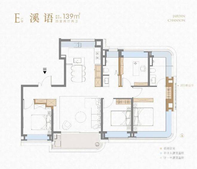 高层除140㎡户型为两梯两户以外,其余全部为两梯四户,中间套带连廊!