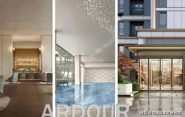 从步入社区大门开始,约70米超大尺度门庭、奢华酒店般的港湾式落客,就将仪式感便顶格拉满;星级酒店大堂,内部多处装置融合非遗技艺美学,生活在尊贵与艺术之间巧妙平衡;进入下沉式中庭花园,归家路上移步异景;单元入户入口延续奢华酒店质感,采用奢石与铝板叠加的奢华设计,碰撞法式圆润线条,仿佛艺术殿堂。