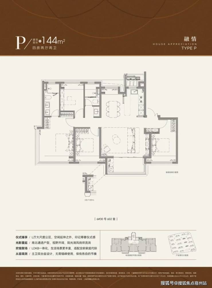 在 110 户型已有的两点之上再度升级,144 户型更加匹配三代同堂、二胎之家。