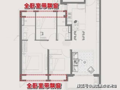 主卧套房设计,带独立卫浴 + 飘窗,私密性强,收纳空间充足