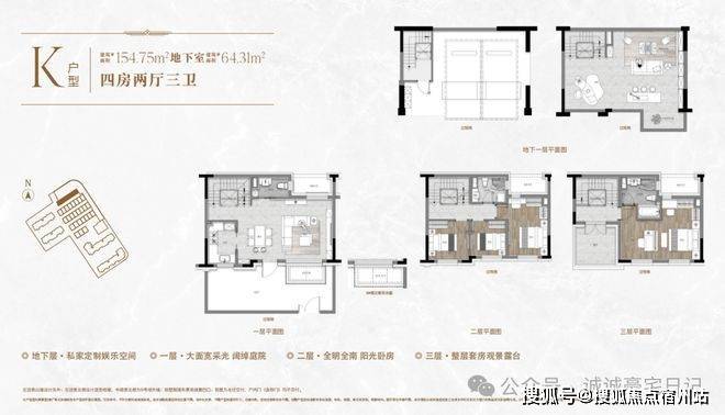 一楼和地下室主社交和志趣,二楼是子女的房间,✅✅兴华里售楼处电话:400 - 8824 - 258✅✅三楼是主人休憩区。