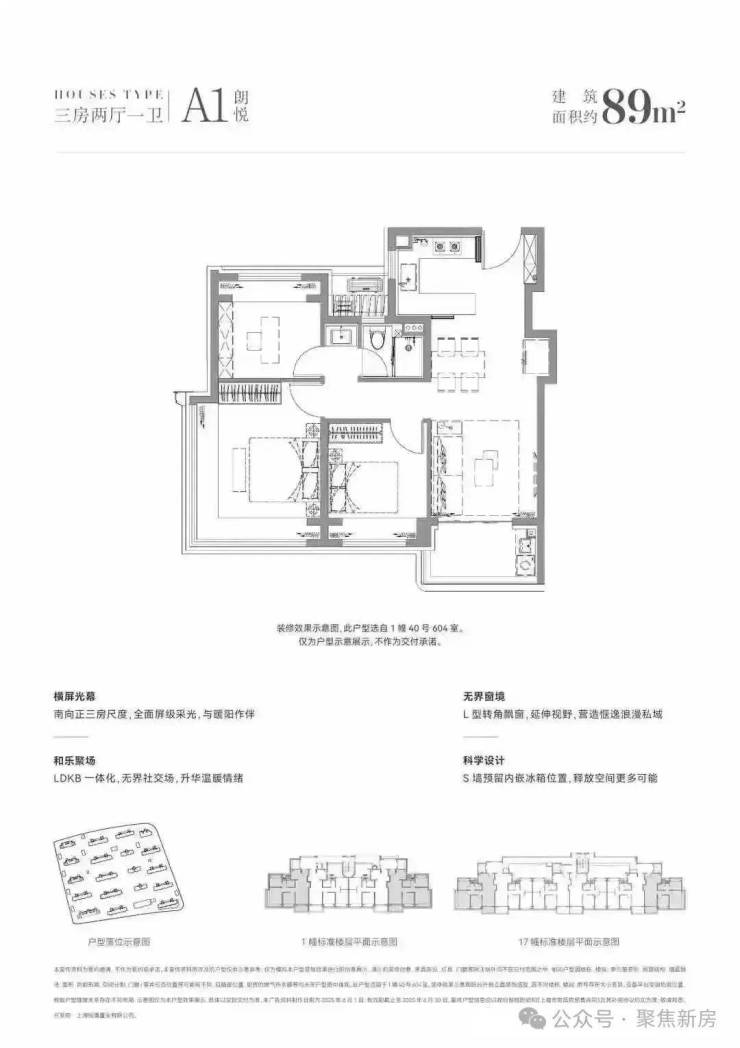 以建面约144㎡户型为例。首先,三大件方面:松下或同档次品牌的中央空调和地暖两联供设备、百朗或同档次品牌的新风系统;