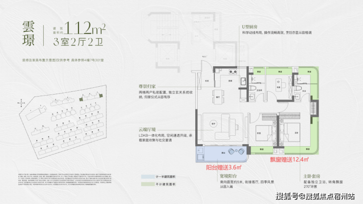 同时休息区全飘窗赠送,主卧更南北双转角飘窗,主卫也有双面飘窗空间,大大提升尺度感。
