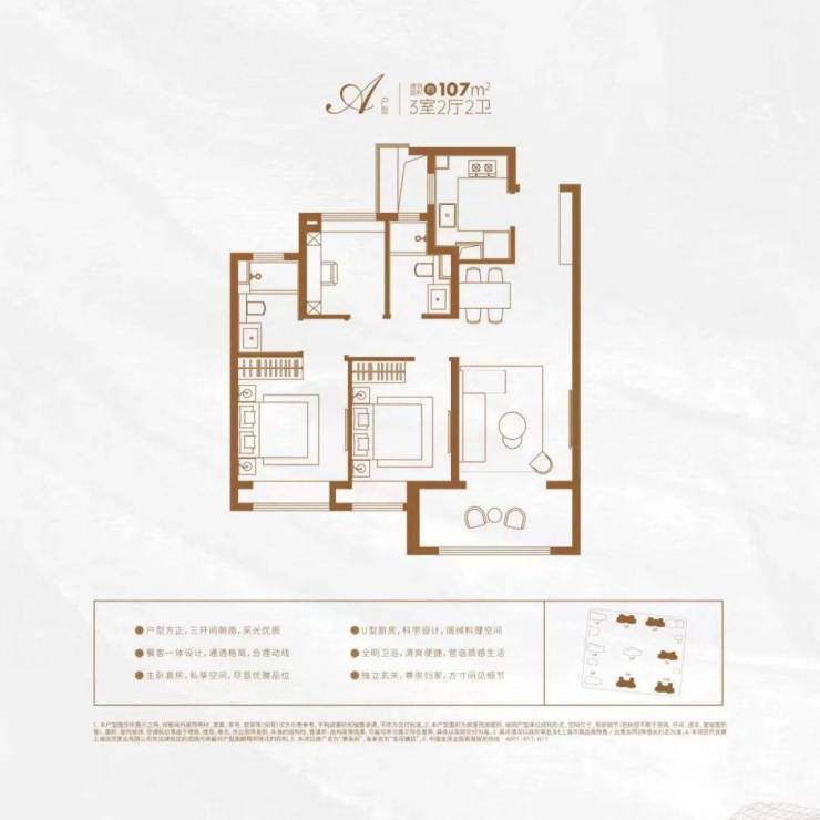 建面约107㎡三房的户型,三开间朝南,大面宽阳台,餐客厅一体,还有精细化收纳体系,人性化细节设计,极具功能性与舒适性,满足高阶精致生活。