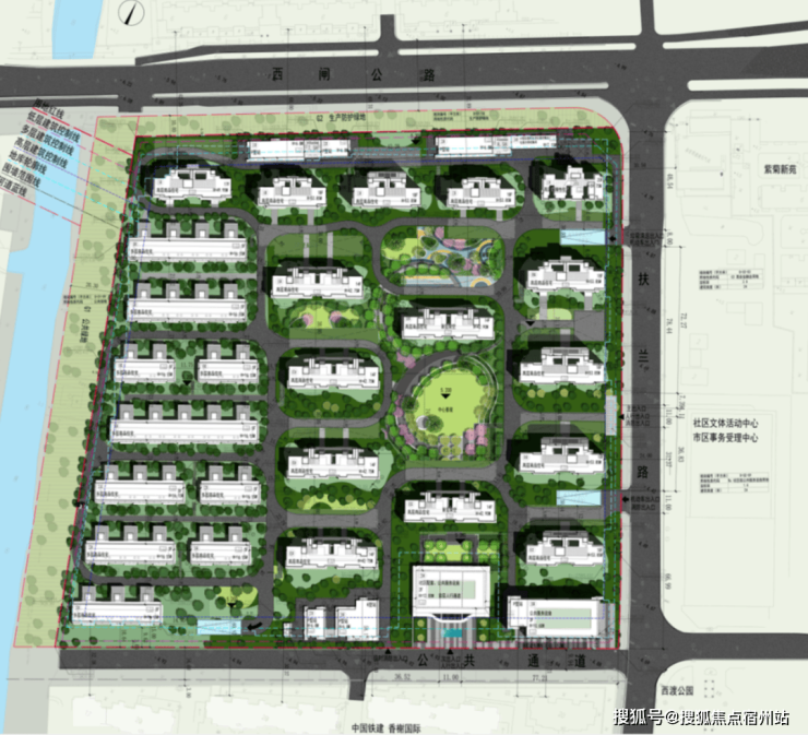 以江南人文精神为源点, 打造两轴一环五进空间,江南礼序归家轴串联启迎盛礼、筑阙会友、归家华堂等5重礼制,尊崇归家;健康运动轴以24小时跑道为社区活力生活环,串联儿童乐园、长者康养、疗愈花园等10大生活场景,营造全龄全时的江南诗意生活