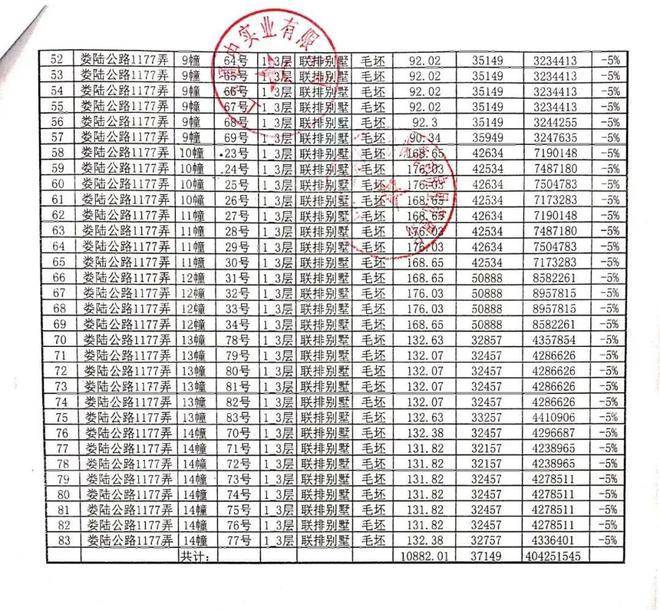 一房一价表: