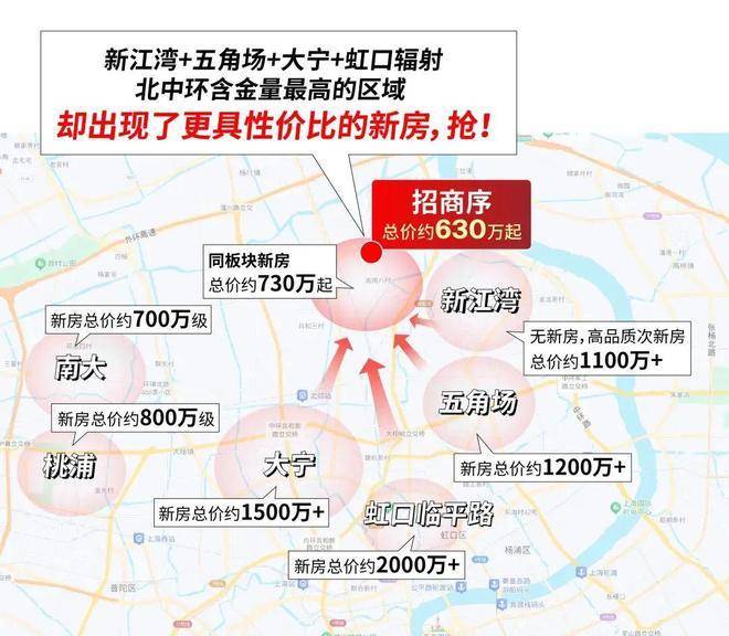一方面,这里是杨浦新江湾、五角场;虹口临平路;静安大宁的下一站,而四大高端豪宅区内的新房门槛大多都在约1200万+,比招商序贵了接近一倍。在大水漫灌之下,招商序所在的区域价值水涨船高,位列宝山第一。