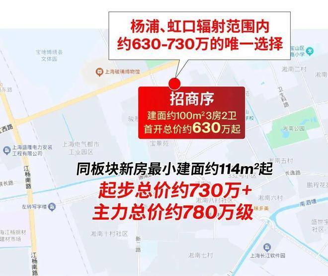 整个高境、淞南目前板块内只有2大新房。除了招商序以外,另外一盘最小的户型建面约114㎡起,3楼的总价就已经高达约750万+。