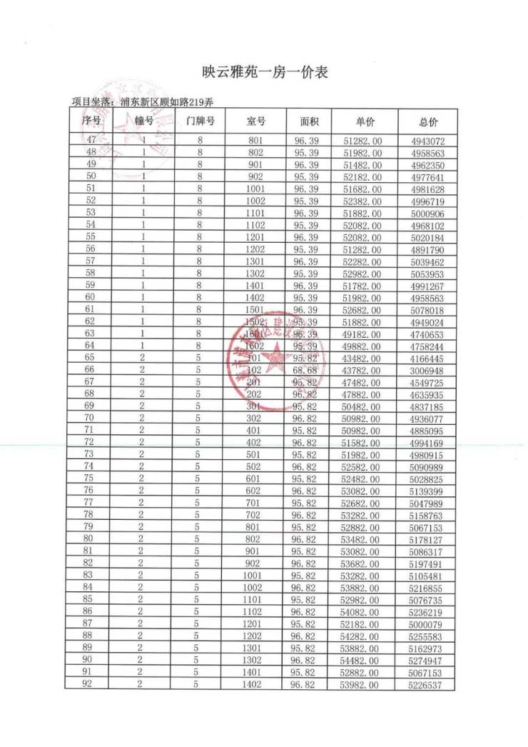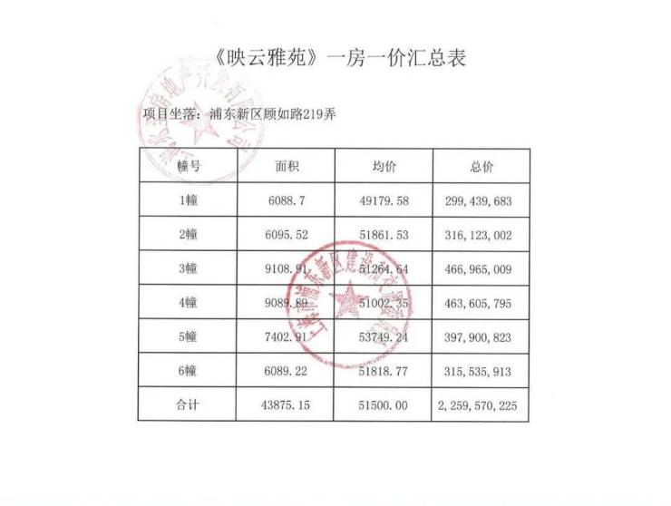 项目一房一价表▼