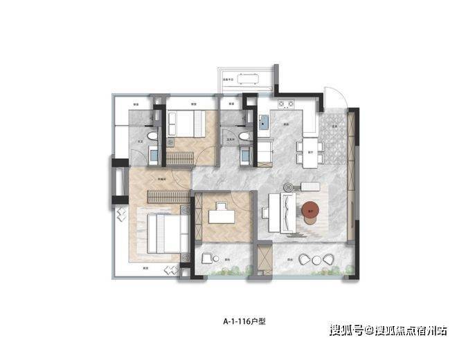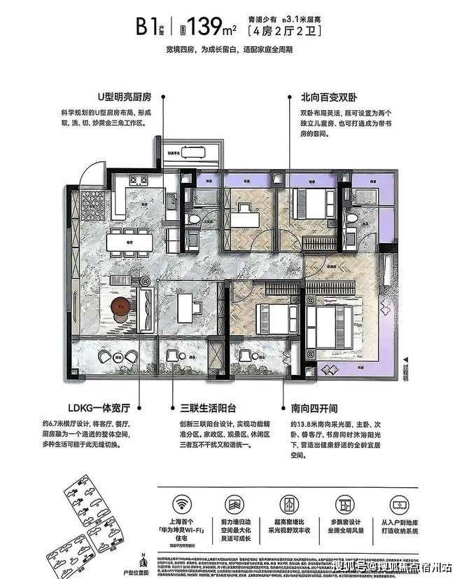 (二)建面约 138㎡三房两厅两卫 —— 主力诗意,宽境舒居