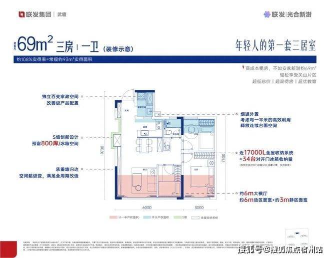 作为入门级改善优选,116㎡户型以 “小而精致、小而舒适” 为核心,打造南北通透、三开间朝南的方正格局,空间利用率拉满。客厅连接半赠送超大阳台,延伸空间尺度,引阳光与美景入室;主卧套房设计,配备独立卫浴与观景飘窗,私享静谧休憩空间;次卧灵动多变,可作儿童房、书房或老人房,适配不同家庭阶段需求;明厨明卫设计,通风采光俱佳,细节之处尽显贴心。总价可控、空间实用、功能齐全,让年轻家庭轻松实现诗意栖居的梦想,不必将就,尽享精致生活。