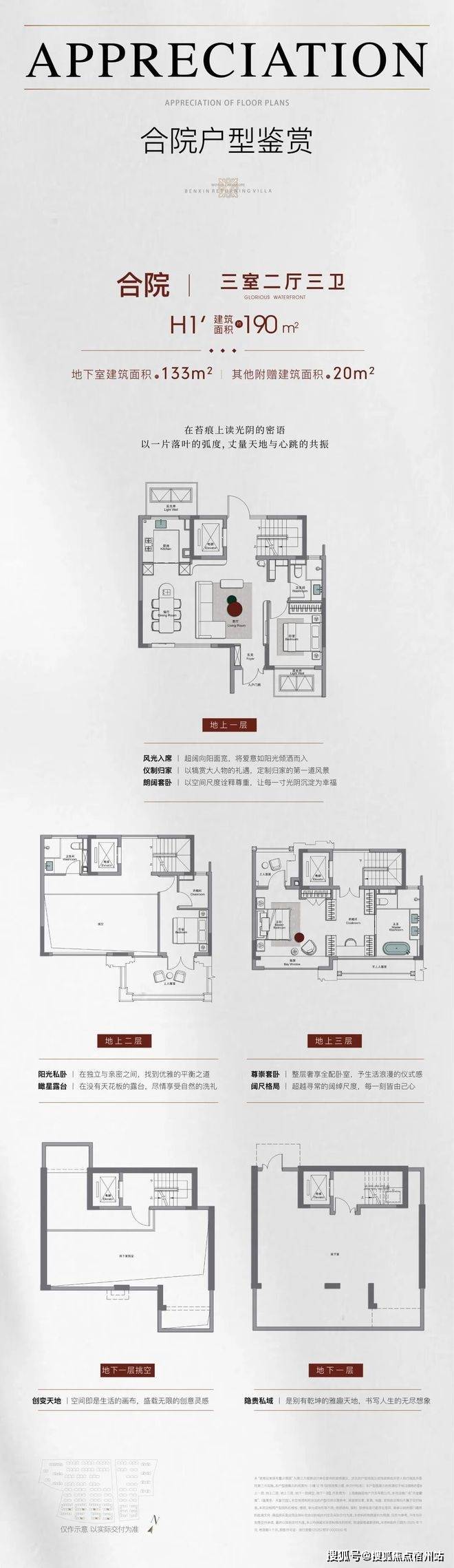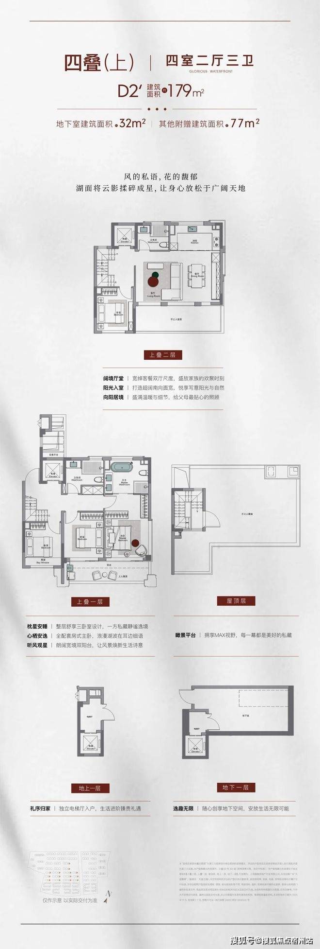 叠拼产品分为上叠、中叠、下叠,建面约149 - 179平方米。上叠享星空露台,居民可以在露台上欣赏星空、举办烧烤派对,享受悠闲的时光;下叠带私家庭院与挑高地下室,私家庭院为居民提供了一个亲近自然、种植花草的空间,挑高地下室则可以根据居民的需求改造成健身房、影音室、酒窖等,满足家庭多元化居住场景。
