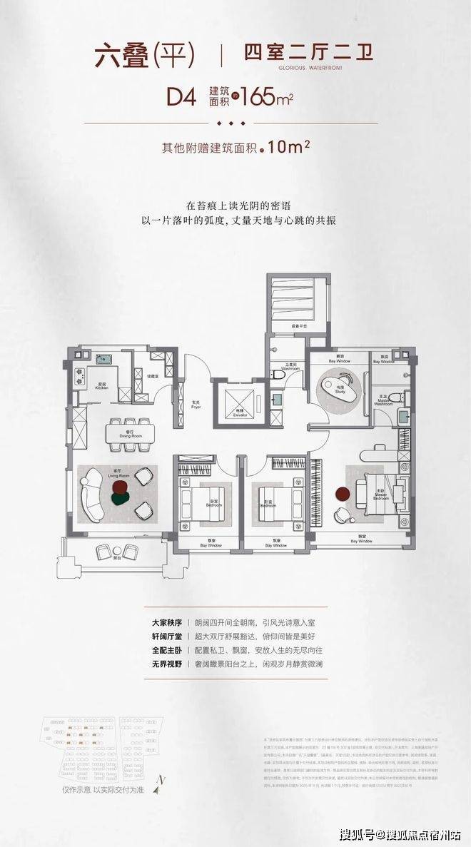 竖厅户型宽境竖厅约4.5米客厅面宽,超同面积段常规配置,黄金面宽进深比,采光视野俱佳,媲美横厅通透感。餐厅双侧预留餐边柜位置,含双冰箱交付机位,一体化收纳系统提升空间利用率。南向客厅与次卧贯通式双阳台,可灵活改造为休憩区、健身房等,满足多元场景需求。边套户型更享约270°环幕飘窗,南向主卧和北向次卧均配约270°转角飘窗,三向采光优化日照,广角视野尽揽湖景园景,兼具休憩、工作功能。