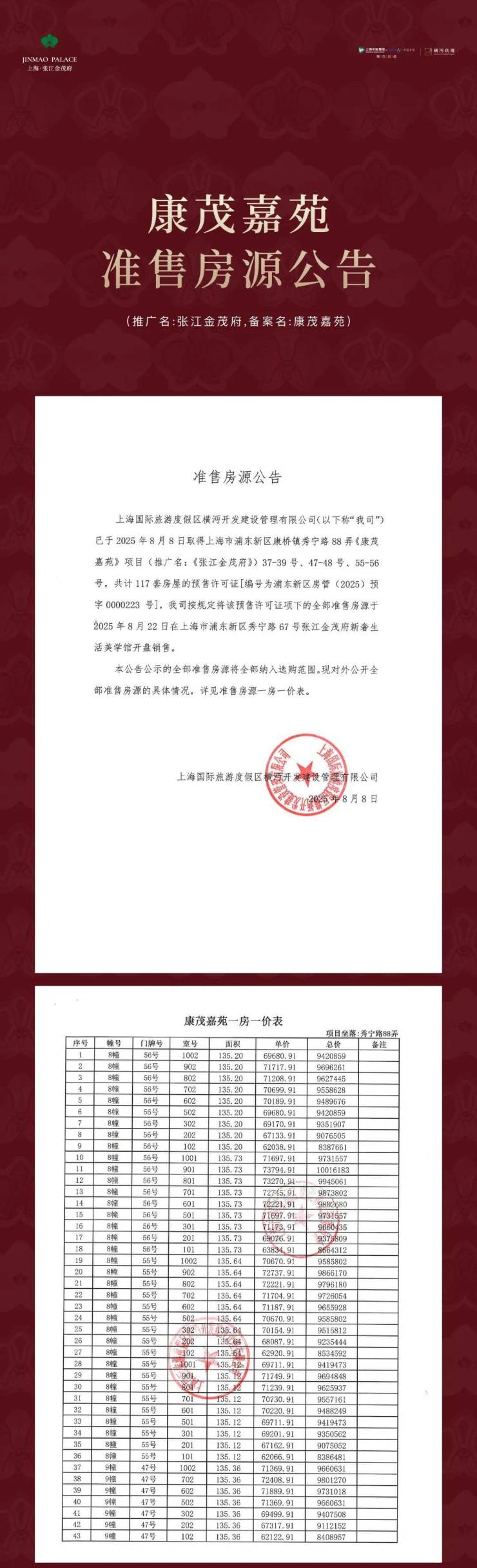免责声明:1.本宣传资料为要约邀请,针对本项目概况进行介绍仅供参考不作为销售承诺。项目不排除因政府相关规划、规定及开发商未能控制的原因而发生变化,最终以双方签署的正式《上海市商品房预售/销售合同》及其他相关协议文本为准。2.关于项目所属片区学校位于项目红线外,其建设进度、师资力量、生源确定等事项均由政府相关主管部门主导。距离为地图直线距离,最终以政府相关主管部门出具的书面文件为准。项目效果图仅供参考,以最终规划审批为准。部分图片来源于网络,仅为示意,如有侵权请联系删除。3.本项目推广名为:张江金茂府,备案名为:康茂嘉苑,本公司上海国际旅游度假区横沔开发建设管理有限公司在法律规定的范围内对本宣传资料保留修改和解释的权利。本宣传资料发布时间:2024年9月.