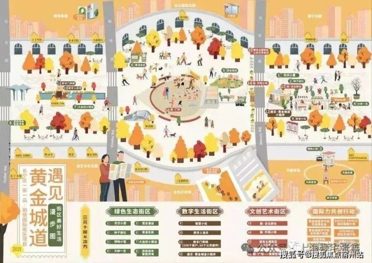 整条黄金城道宽46~80米、长1800米,将其周边20多个明星住宅区串联起来。其中 步行街长680米,二期整个组团的规划 以黄金城道步行街为唯一主轴,为古北的居民提供了一块完美的生活休闲场所。
