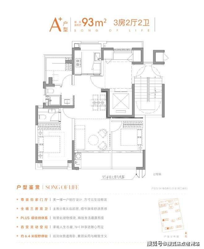 飞机户型南北通透;餐厅位置比常规户型更阔绰,可容纳6人桌,小家庭聚餐其乐融融