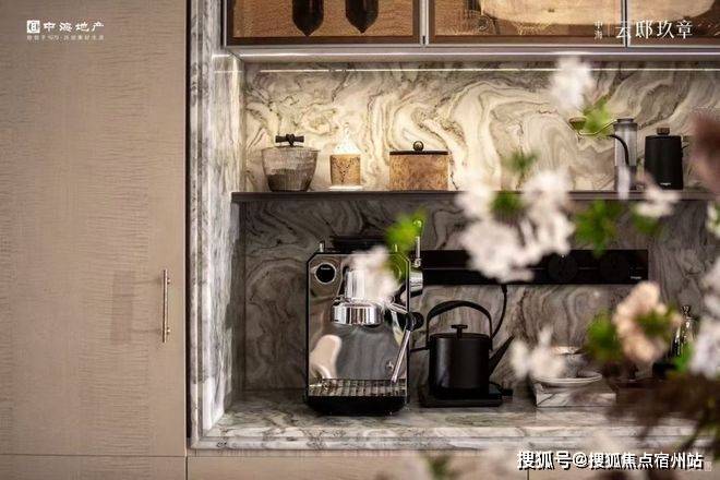 中海云邸玖章售楼处电话:400-856-9058餐厅靠墙布置了通高餐边柜,极致收纳,分层合理。人体工学设计,台面高度合理,在使用过程中不需要弯腰;移动电力轨道可满足台面自由布置各种厨电,高度预留充足,能放下专业级咖啡机。顶柜可作为酒柜、玻璃杯架,底柜设计托盘式抽屉,满足多样餐具收纳。中海云邸玖章售楼处电话:400-856-9058