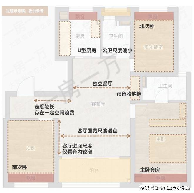 此外,进门玄关,以及客厅东北角均有“角对角”的墙体格局出现,一方面使用感受略有影响,另一方面可能卡住大件家具进出,✅✅安高海印华庭售楼处电话:400 - 882 - 4258✅✅同样建议实际体验来做决定。