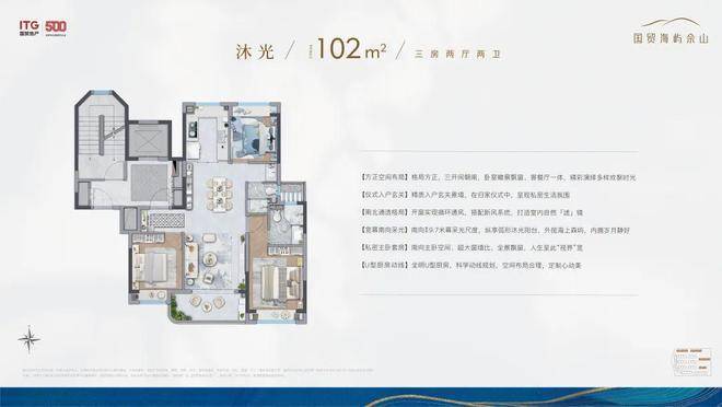 市面上大多百平小三房,都是“伪”三房,实际使用起来空间十分局促。国贸海屿佘山户型设计优点:客厅阳台约270度采光体系+南向双飘窗+北房间也能够作成卧室,无连廊的飞机户型,整体的得房率做到了78-80%。